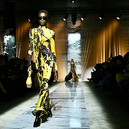 The warm tones of mustard and moss green were prominently featured, signalling a continuation of these autumnal shades into the Fall/Winter season. Jewellery in matching hues or complementary colours can elevate an outfit, offering a cohesive look. Amber, peridot, and malachite pieces, set in warm metals like gold and bronze, can mirror the richness of these colours, creating a harmonious blend with the season's palette.