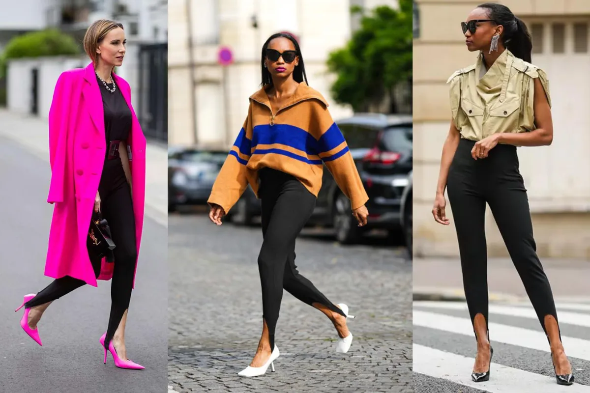 Paloma Elsesser's innovative pairing of stirrup leggings with heeled sandals offers a fresh take on footwear.